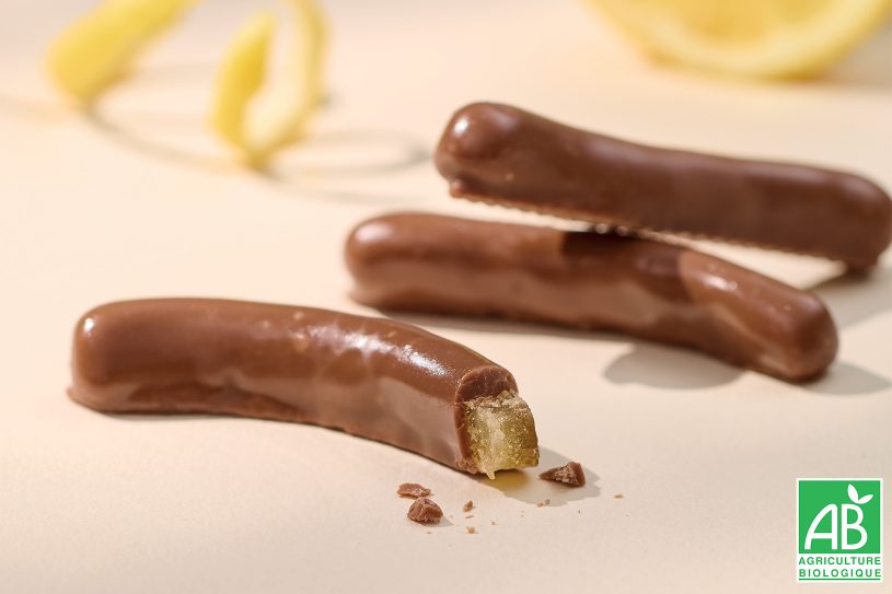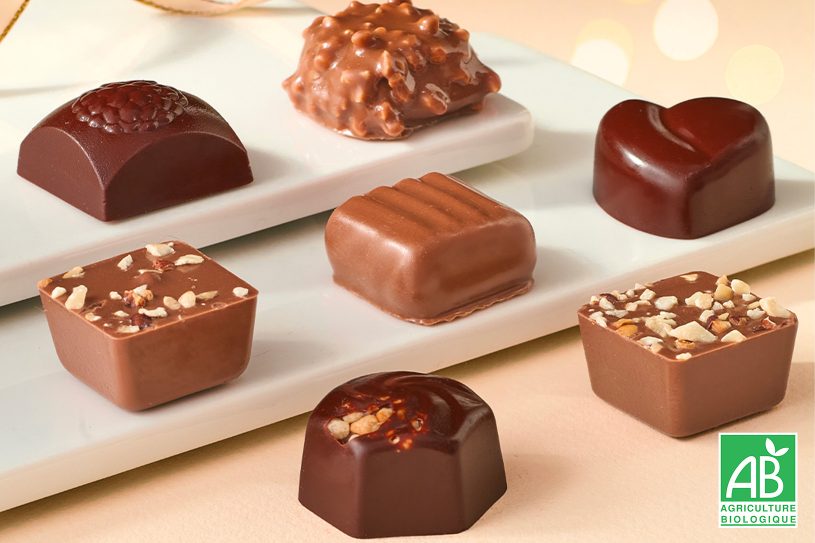 Exemple : si un chocolat contient des agrumes confits ou des fruits secs, eux aussi doivent être bio à au moins 95 % pour que le produit final porte le label.